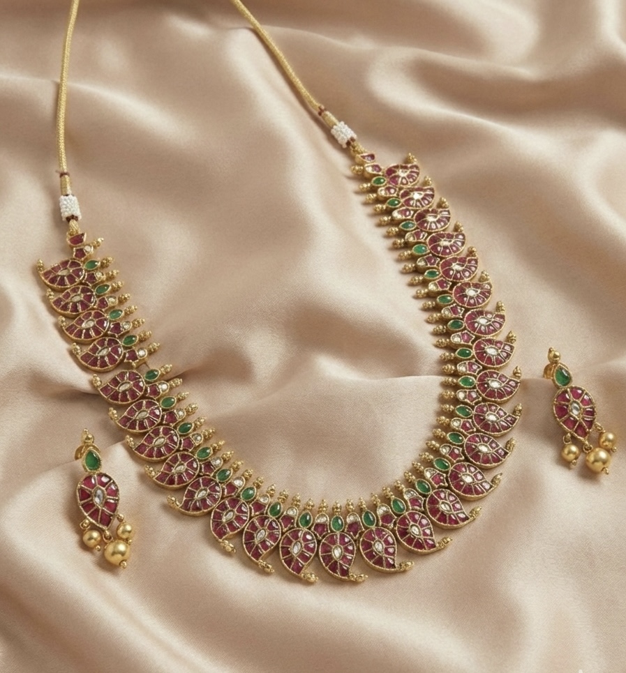 Grand and resplendent, this Mughal-inspired masterpiece celebrates luxurious hand artistry. Rich semi-precious stones and elaborate detailing come together to create an heirloom worthy of royal legacy.